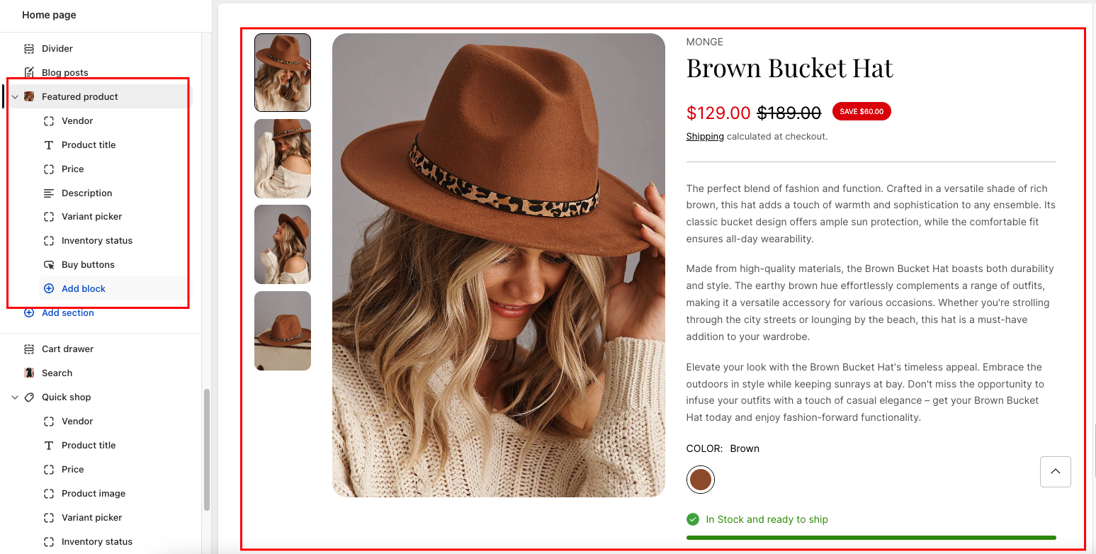 **Show sale badge:** Display product labels like discounts, preorder, out of stock