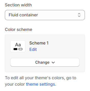 **Section width:** You can choose among Fluid container, Full width, Stretch width for the banner layout.