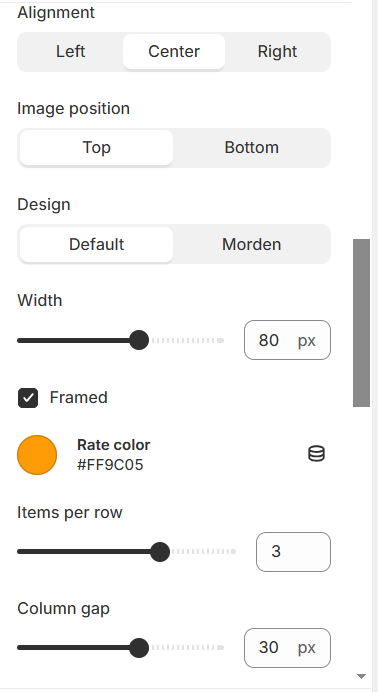 **Items per row:** In mobile view, the number of items displayed on each row in the grid layout can be customized to suit your preferences and the overall design of your site.