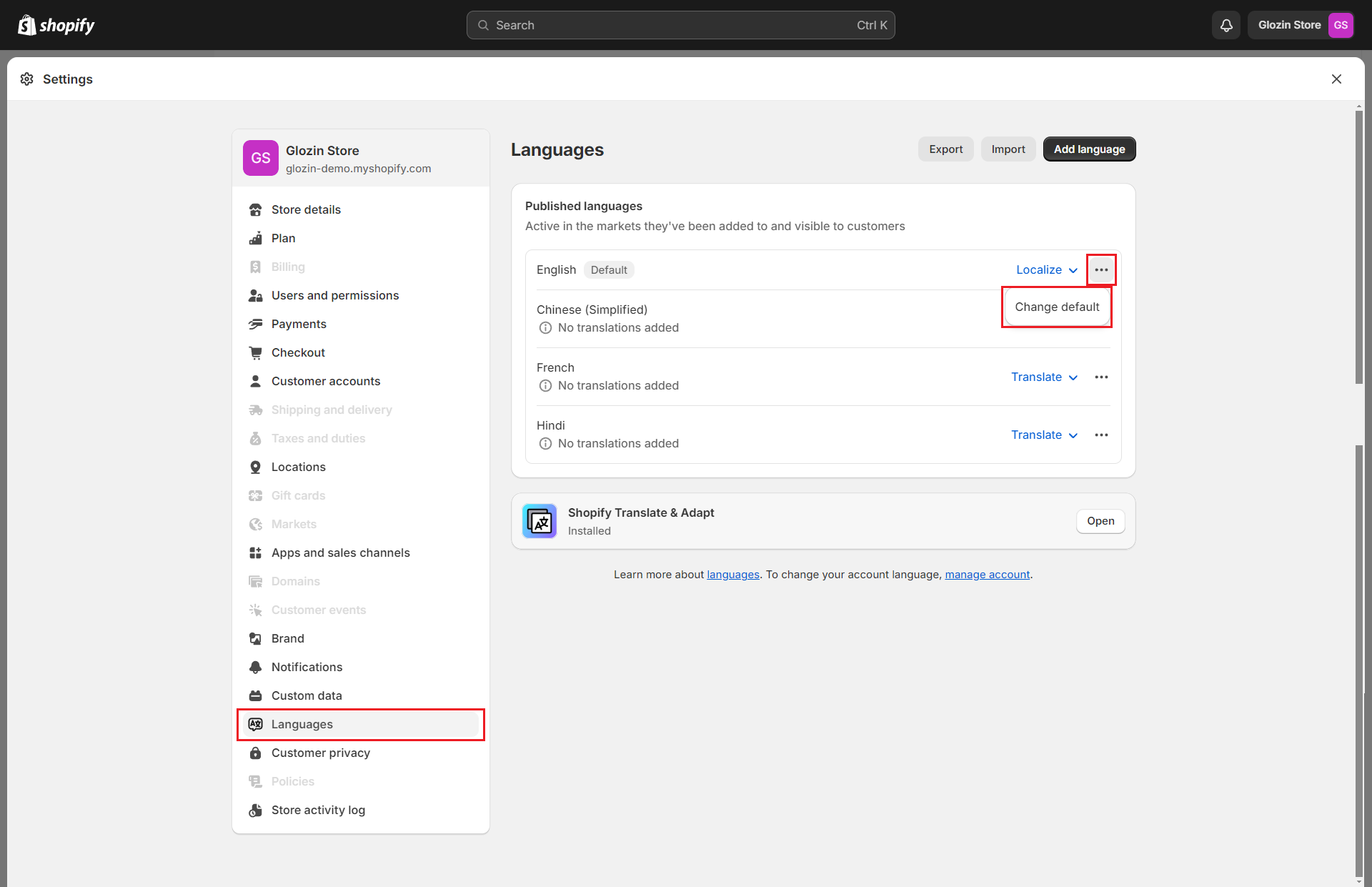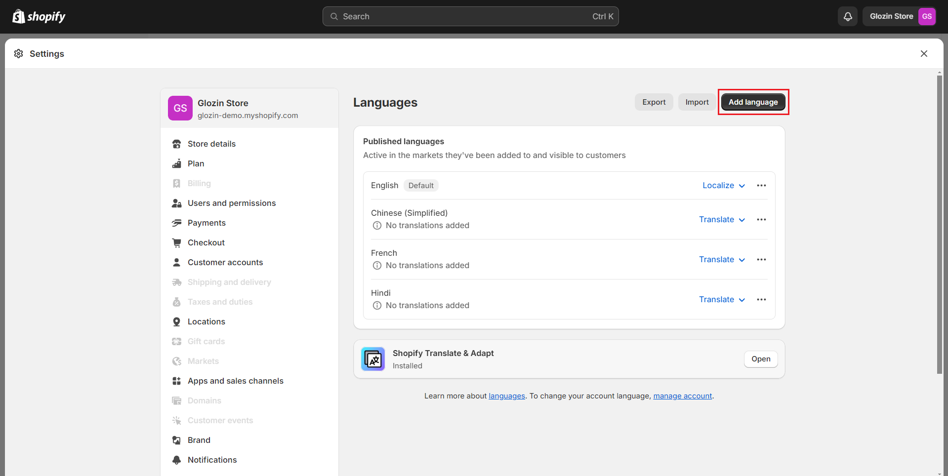 Step 1: Install the Translate & Adapt app by Shopify