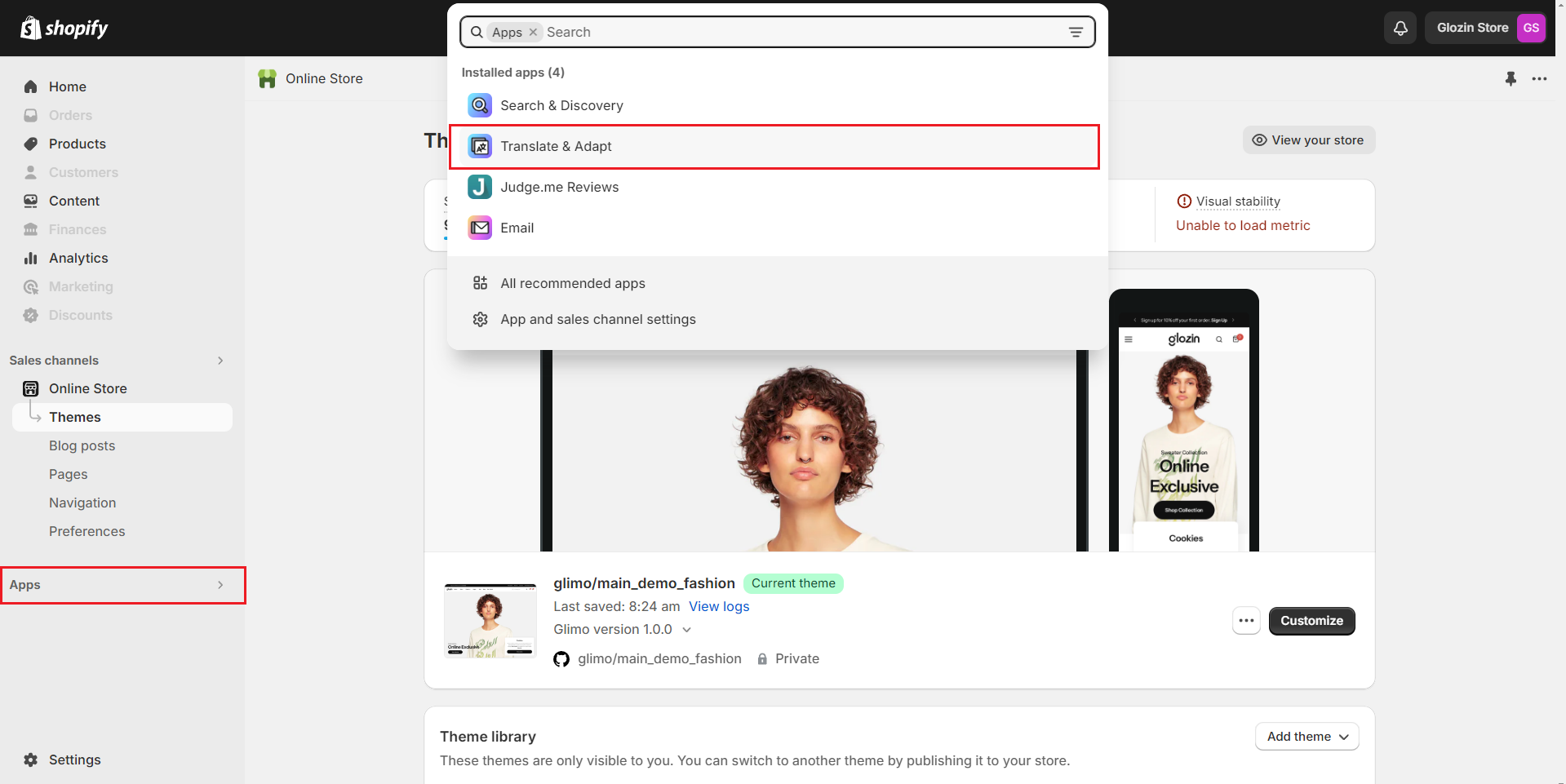 After adding the Glozin theme and changing the default language to the new language, but the theme is still not automatically translated, you can follow these steps: