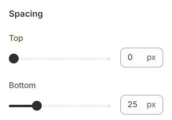 Spacing allows you to specify the space between this block and the preceding or following blocks, or both.