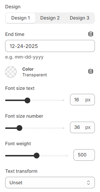 You have the option to configure the countdown timer by setting a specific end time directly here. Additionally, you can customize the appearance of the timer block by selecting from various design options, ensuring that it aligns with the overall aesthetic of your page. This allows for a personalized and engaging user experience.