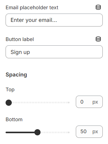 Here, you have the flexibility to customize the email input field by entering a placeholder text that guides users on what information is required. Additionally, you can define the label for the submission button, tailoring it to better match the action you want users to take.