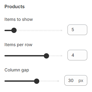 Determine the total number of products to showcase, configure how many products should appear in each row, and adjust the spacing between adjacent products for a neat and organized presentation.