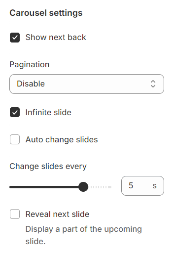 Infinite slide: Enable this option to allow the slides to loop endlessly, creating a seamless scrolling experience.