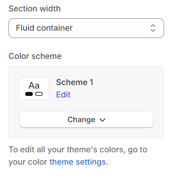 Section width: You can choose among Fluid container, Full width, Stretch width for the banner layout.