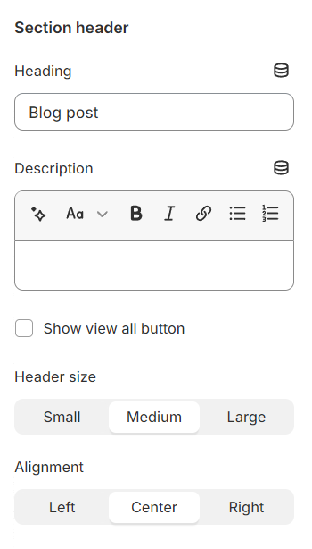 The section Blog posts allows you to automatically add those articles which have the same blog group without manually adding one-by-one. It's never been easier to create a blog post.