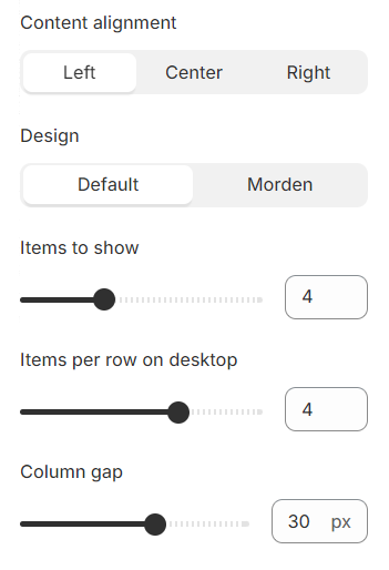 Utilize the slider to modify both the number of blog posts per row and the total number of posts shown. Furthermore, you have the option to adjust the spacing between each post within this section.