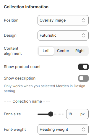 Font size and Font weight: Customize the font size and weight for the content heading text.