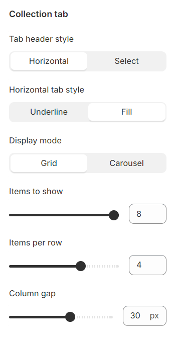 Items to show: This setting allows you to determine the number of products displayed in a single tab, giving you control over the quantity of items visible at once.
