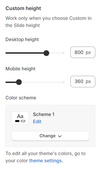 Slide height: The image height can be configured to fit the full screen, maintain its original height, or be adjusted to a custom height.