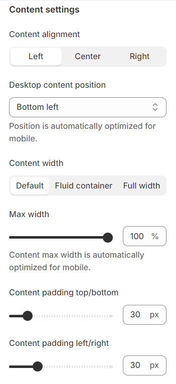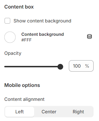 Show content below image: Enable this option to display content, such as headings or descriptions, below the image on mobile devices for a more compact and organized layout.