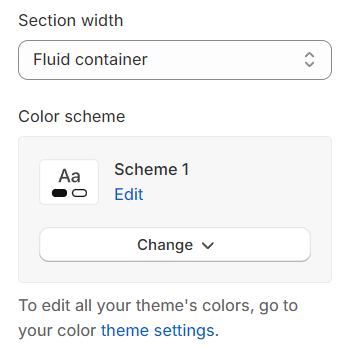 Section width: You can choose among Fluid container, Full width, Stretch width for the banner layout.
