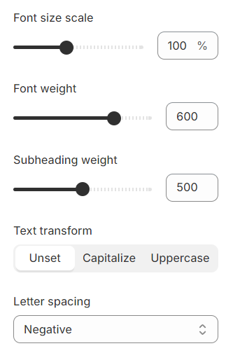 Subheading weight: Sets the weight of the subheading font.